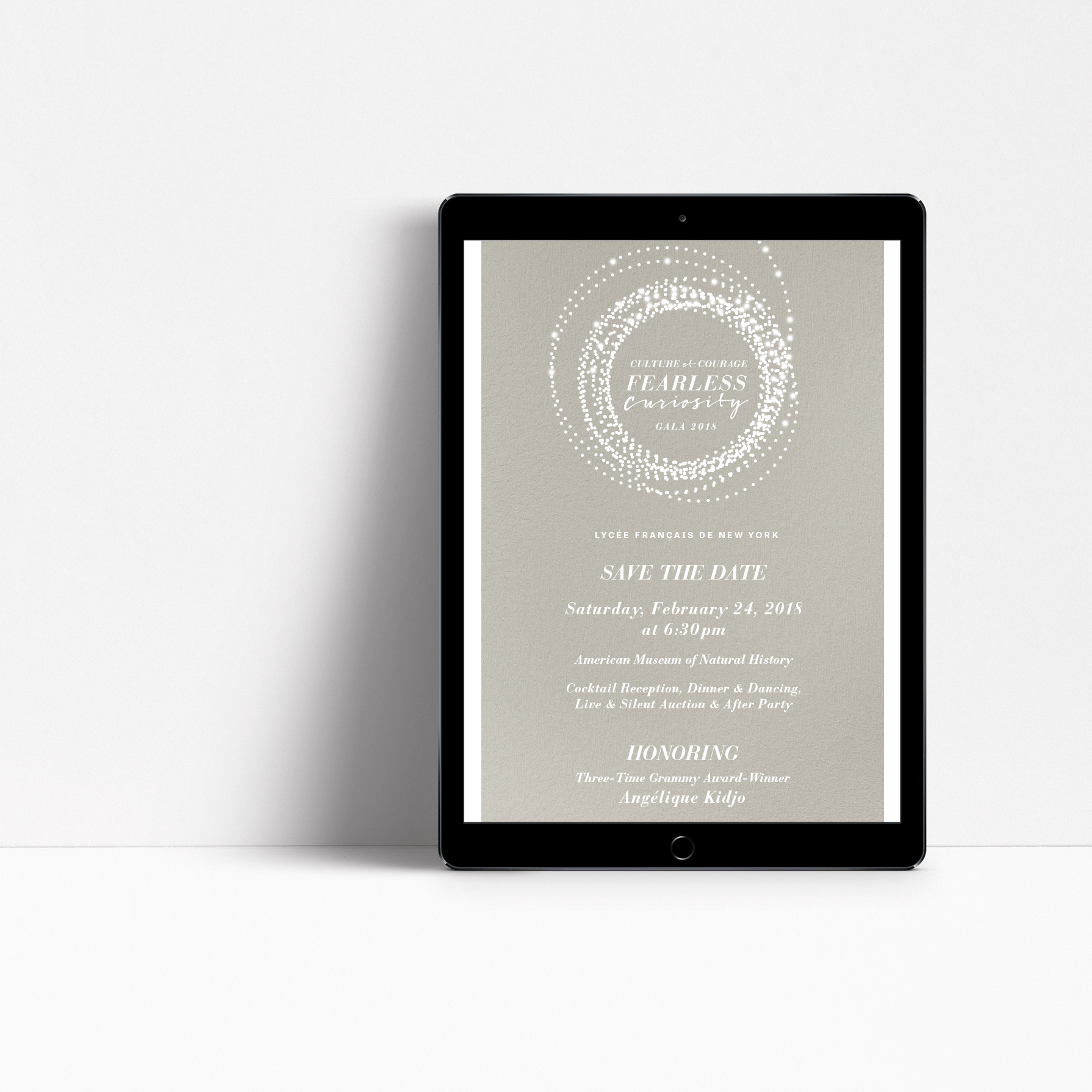 Developed overall design of event graphics and branding, printed and digital collateral, for the Lycée Français de New York's annual fundraising gala. Created an animation of the logo to add a touch of magic to the site, emulating the lighting installation that would be displayed at the event. Site built by editing CSS in an existing template, creating a fully customized look, with responsive features.